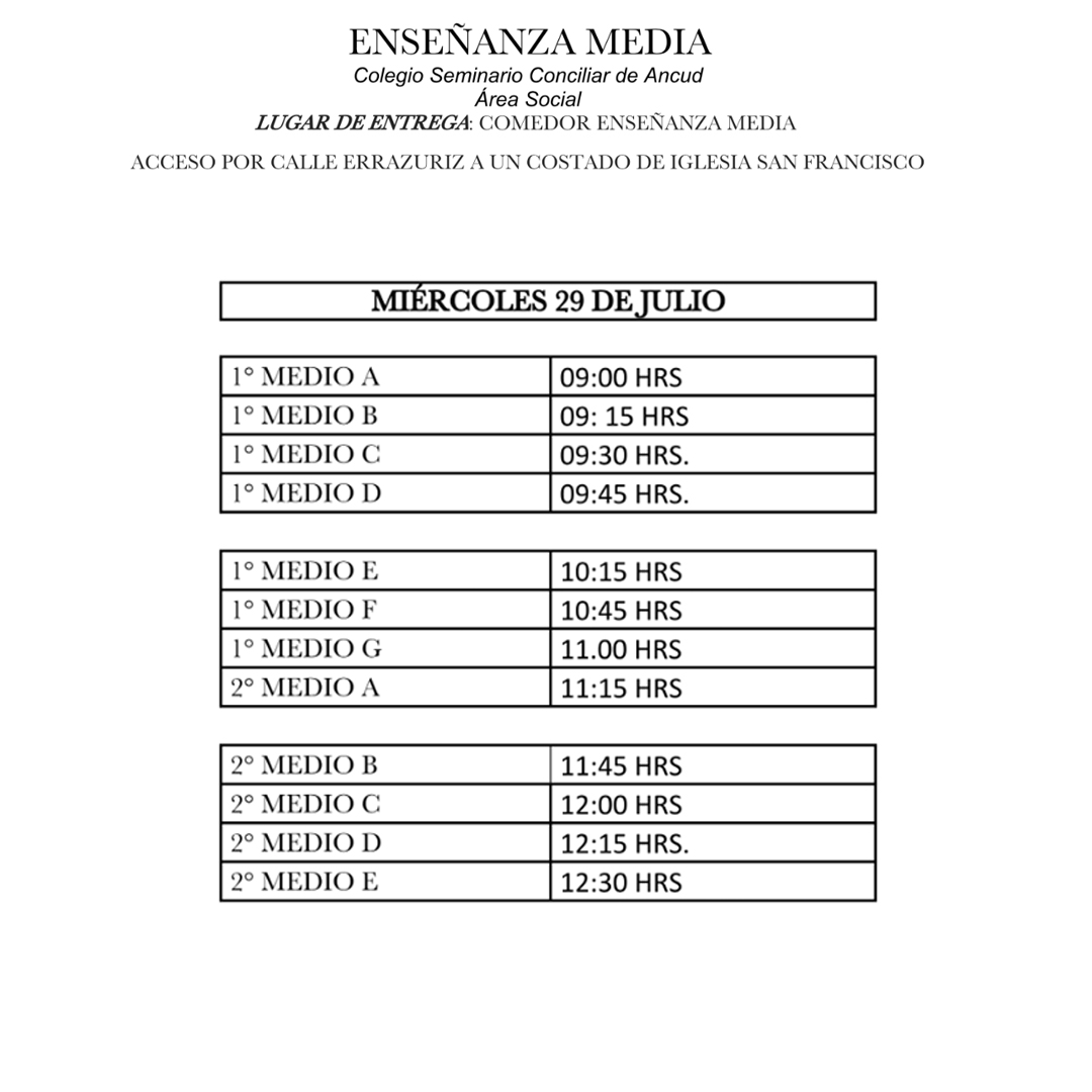 Junto con saludarles muy cordialmente y esperando se encuentren bien en el Señor junto a sus familias, informamos a Ustedes que los días miércoles 29 y jueves 30 de julio se realizará la entrega de la 6ta. Canasta de Alimentos por parte de la JUNAEB.