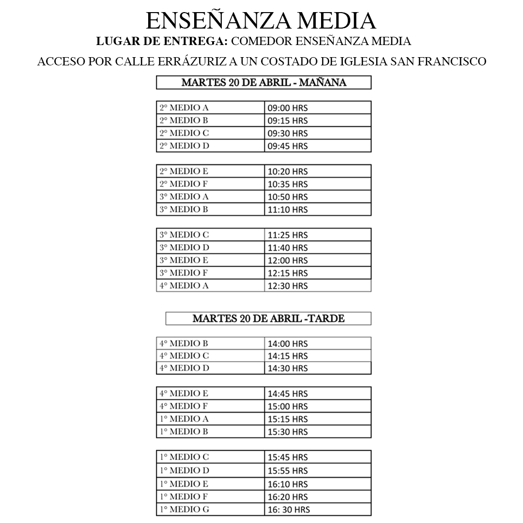 con Profesores Jefes, ya que cada uno tiene la lista oficial de su curso. EN CASO DE NO RETIRO AVISAR AL CORREO ELECTRONICO areasocial@seminarioancud.cl O AL CELULAR DE AREA SOCIAL 949957866 ANTES DEL MARTES 20 de ABRIL.