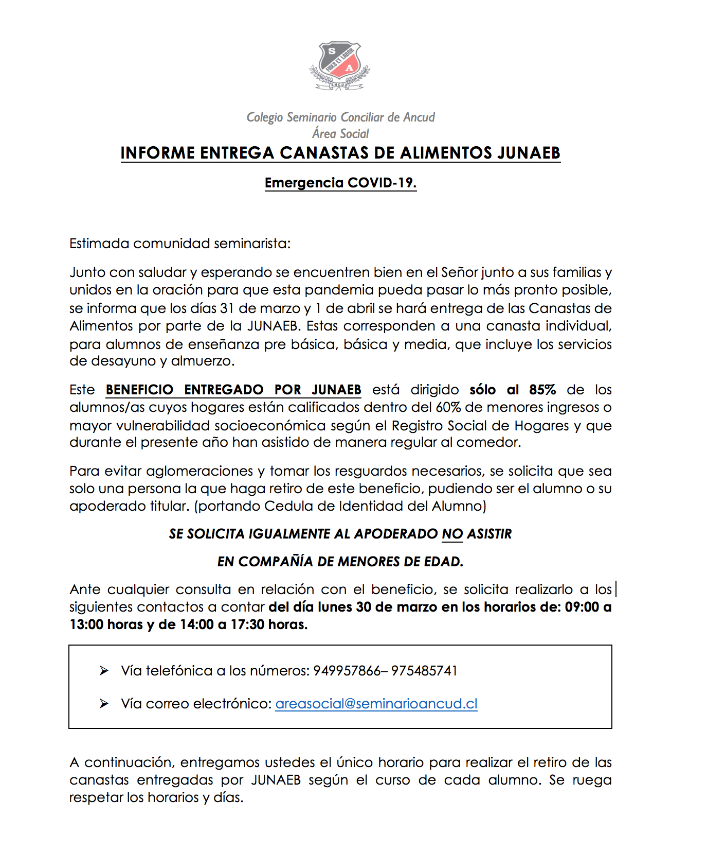 Compartimos con ustedes un informativo sobre la entrega de canastas de alimentos JUNAEB.