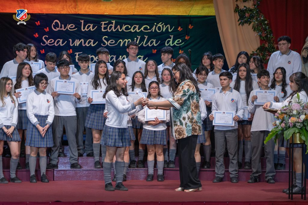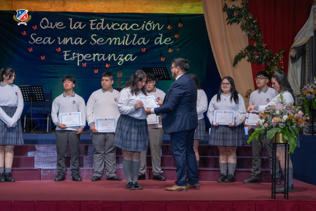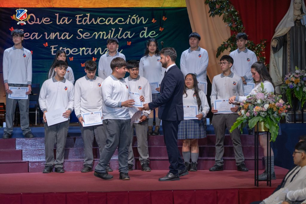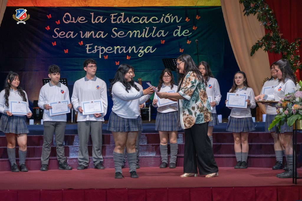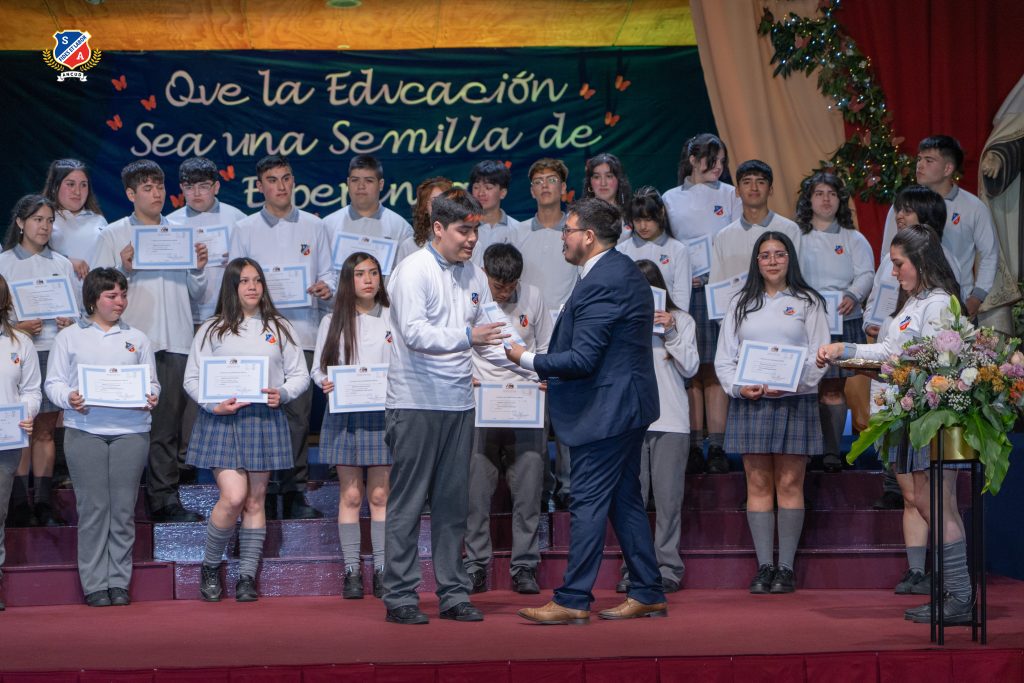 Durante esta solemne ceremonia, se entregaron premios individuales en reconocimiento al destacado desempeño académico y humano de nuestros estudiantes. Además, se presentaron diversas interpretaciones musicales que acompañaron a nuestros egresados en este importante momento.