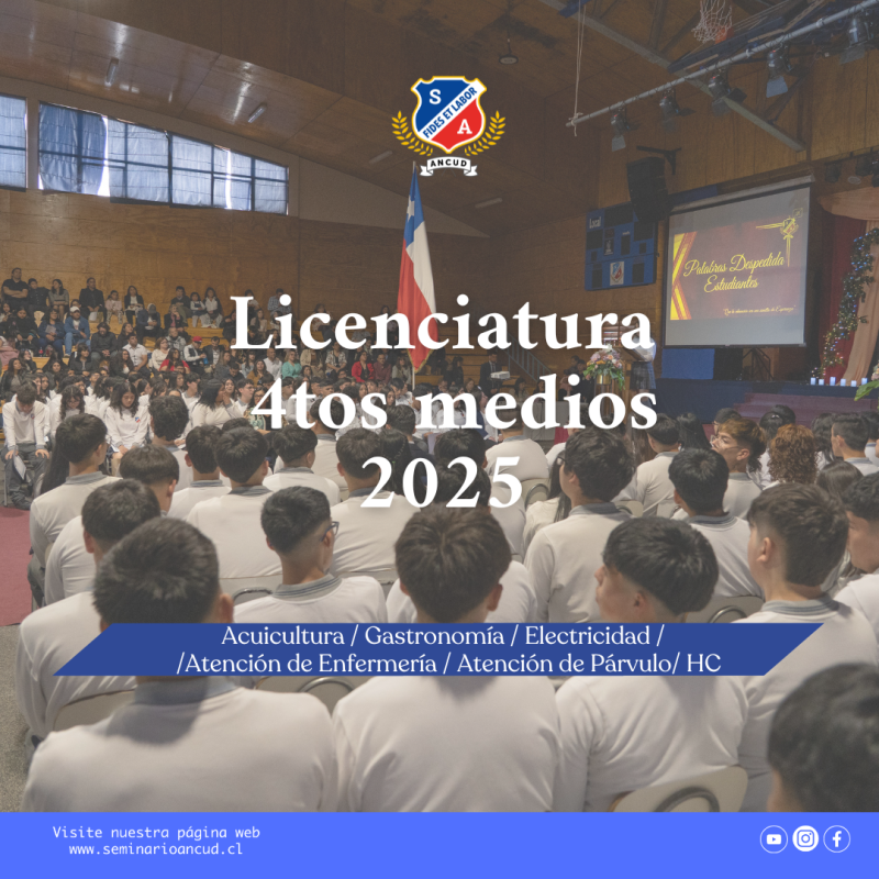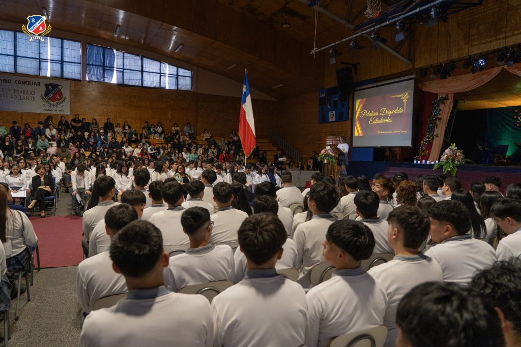 Con orgullo y alegría, les compartimos las imágenes de la reciente ceremonia de licenciaturas de los estudiantes de cuarto medio, generación 2025, celebrada el pasado viernes 14 de noviembre en el gimnasio Justo Donoso. Fue un evento cargado de emociones, donde nuestros egresados, acompañados de sus familias, dieron un importante paso hacia nuevos desafíos y oportunidades en sus vidas.
