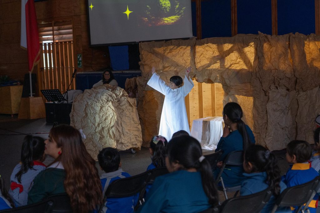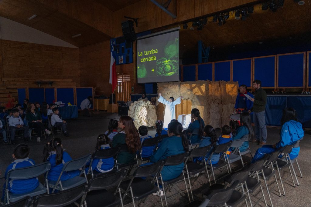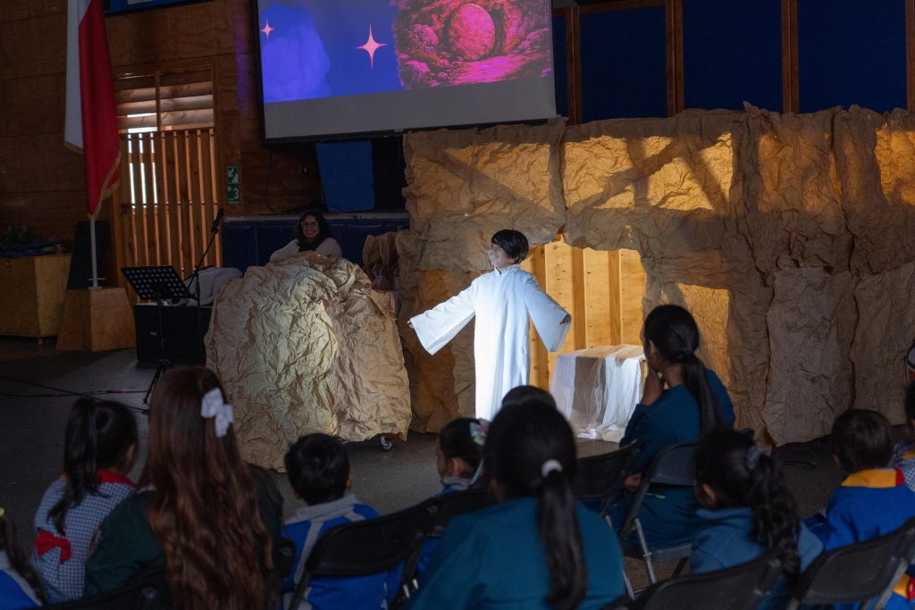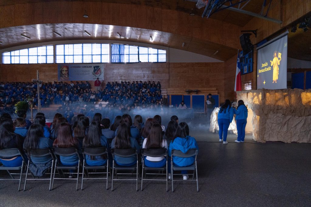 Asimismo, el Departamento de Pastoral, junto a los jóvenes de pastoral y estudiantes de educación básica, realizaron una representación artística de la Resurrección de Jesús, dando vida a este importante momento de nuestra fe.