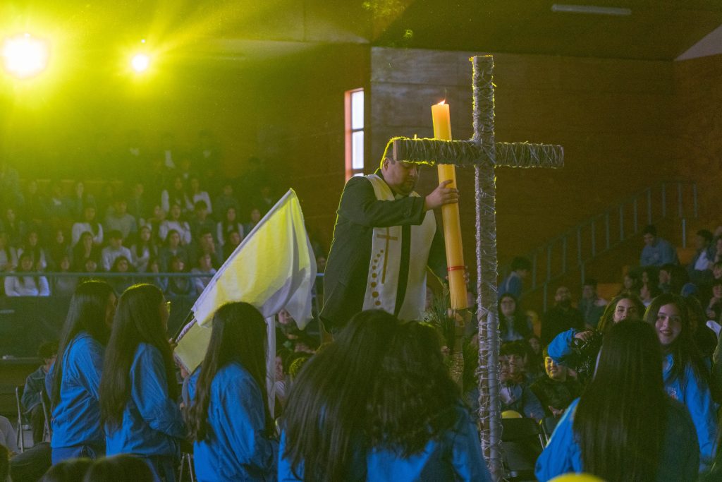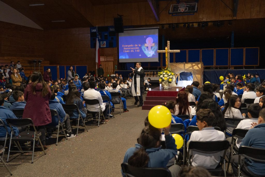 Compartimos con ustedes las fotografías de la reciente liturgia de Pascua de Resurrección, celebrada el lunes 6 de abril en el Gimnasio Justo Donoso. En esta instancia, nuestro capellán, padre Alex Gallardo, nos acompañó y bendijo durante la celebración.