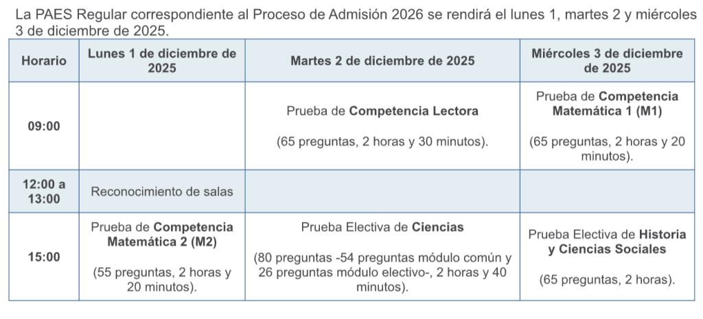 Les recordamos que este lunes se rendirá la PAES proceso de admisión 2026. Les dejamos algunos tips importantes para ese día: