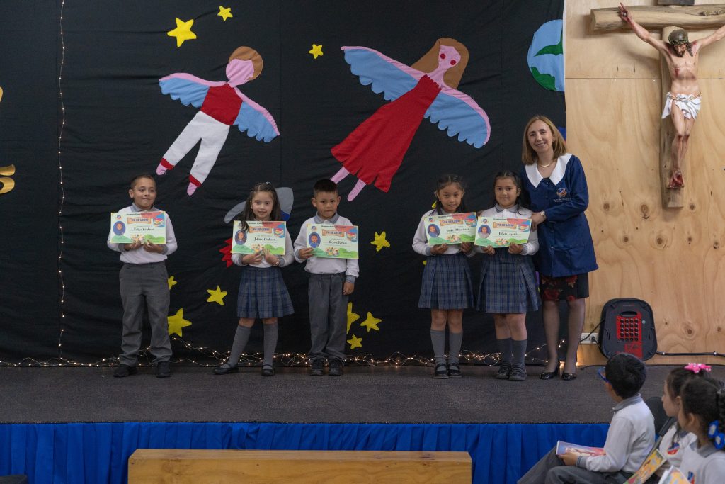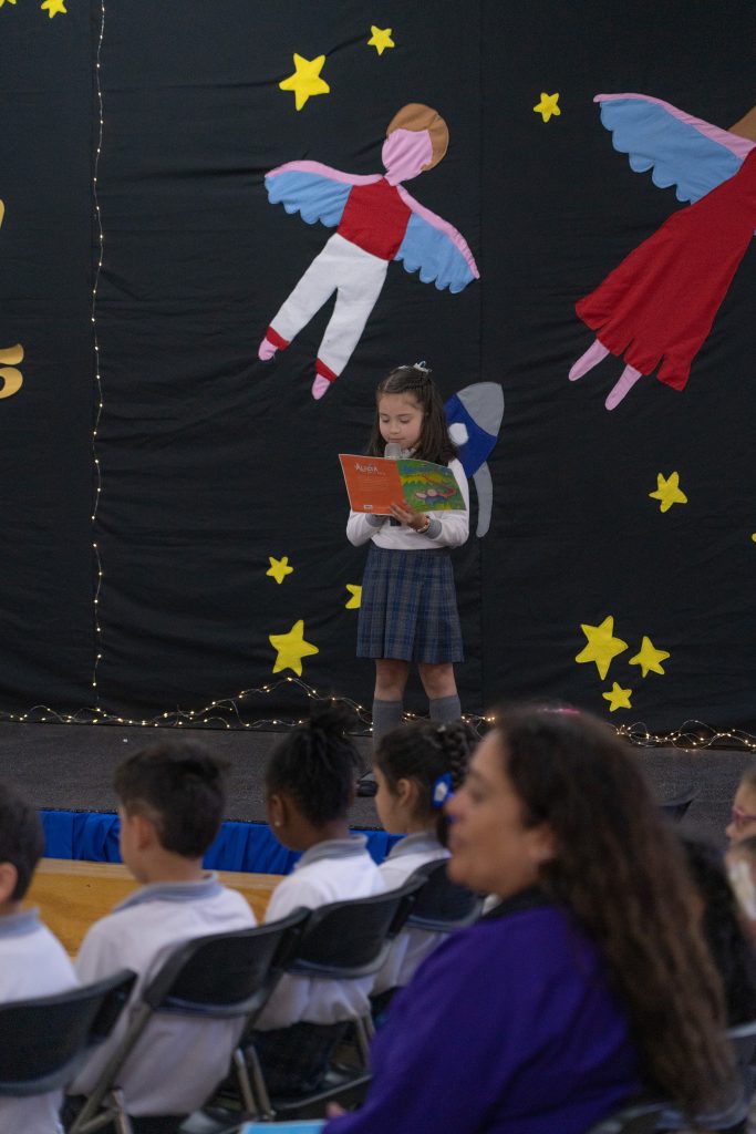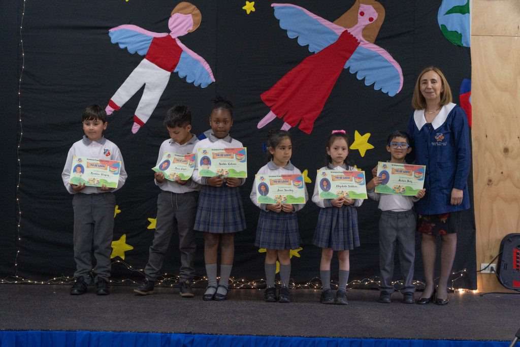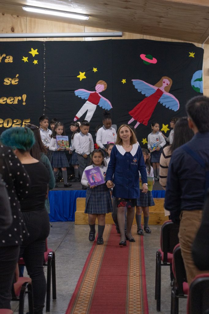 Durante la ceremonia, los estudiantes desempeñaron roles como animadores y locutores, con el respaldo de sus profesoras y tías asistentes de la educación, quienes las apoyaron a lo largo de esta importante etapa de sus vidas. Durante el acto disfrutamos de presentaciones artística y también se otorgaron diplomas conmemorativos que simbolizan el importante logro de aprender a leer.
